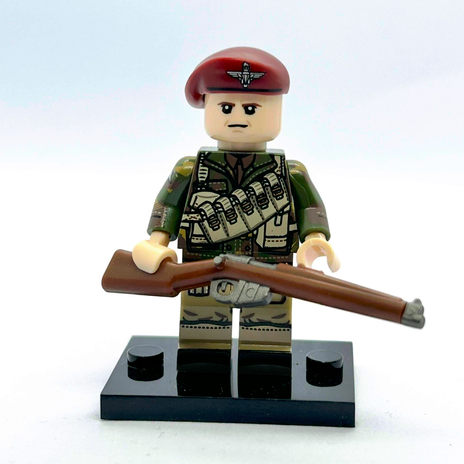 Deze minifig is een gelijkwaardige replica en geen officieel LEGO-product, maar de details van de camouflage en uitrusting brengen de sfeer van de Arnhem-gevechten sterk tot leven.